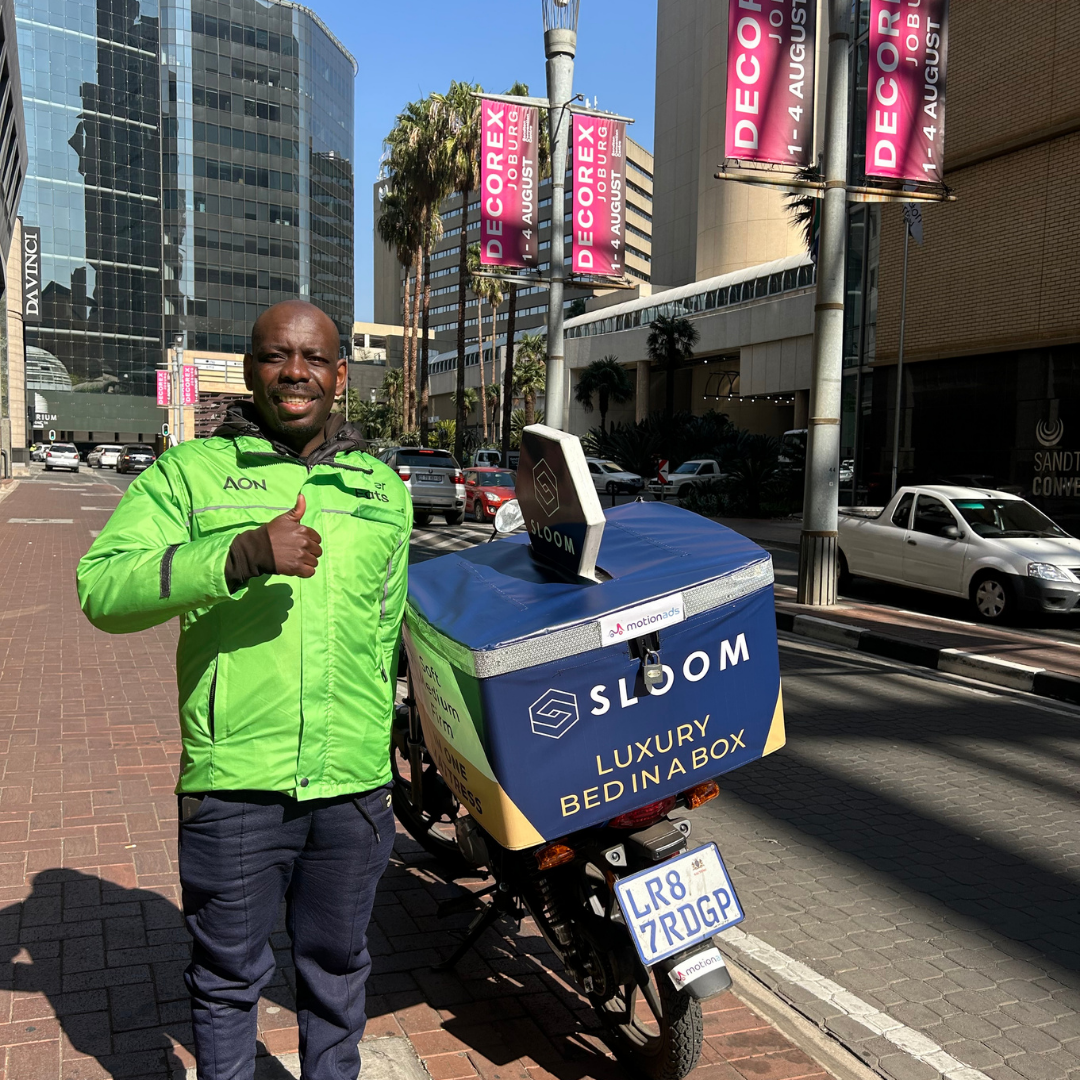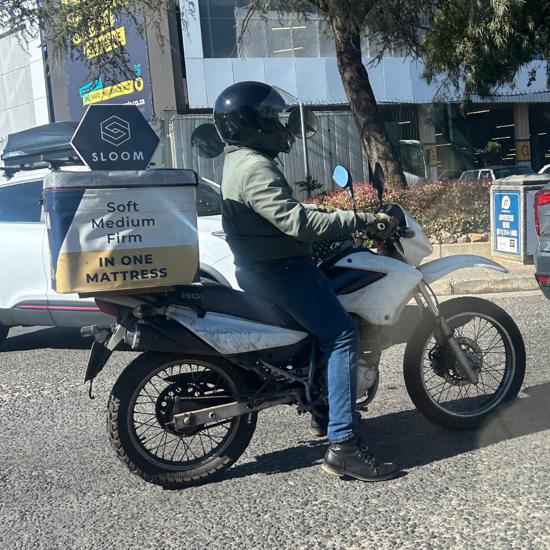 “We were excited to add another valuable marketing touch point for brand awareness in Sloom’s sales funnel,” says Jon. “We started out with three bikes in Joburg in September 2019, and this quickly increased to 10 branded delivery bikes as Rudo saw immediate value.”