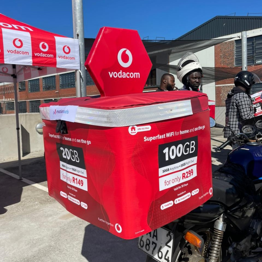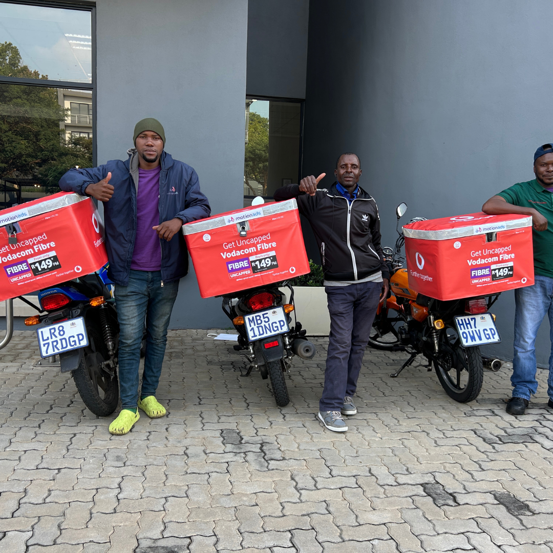 This month, Vodacom strategically extended their MotionAds campaign into the East of Johannesburg - a high-density, high-traffic region where visibility is critical.With delivery bikes carrying their R429 fibre offer, Vodacom is putting unbeatable value directly in front of consumers during their daily routines and gaining unmatched brand presence at street level.It’s hyper-local targeting at scale, designed to drive relevance and awareness where their target audience moves most.